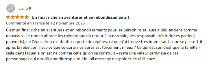 - Tout public. L’écriture est accessible et adaptée dès 10 ans, mais pour les plus exaltés, je glisse un TW. Je le déconseille au moins de 12 ans pour celles et ceux qui contrôlent mal leurs émotions à la lecture, car les épouvantails peuvent faire peur aux plus jeunes.